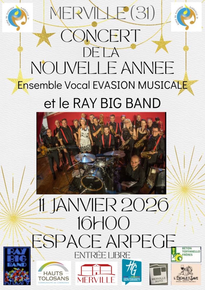 Dimanche 11 Janvier aura lieu le traditionnel concert de la Nouvelle Année organisé par votre Ecole de Musique. RDV à partir de 16h à la salle Arpège de Merville. Au programme cette année : en première partie : la chorale de l’Ecole de Musique EVASION MUSICALE sous la baguette de …